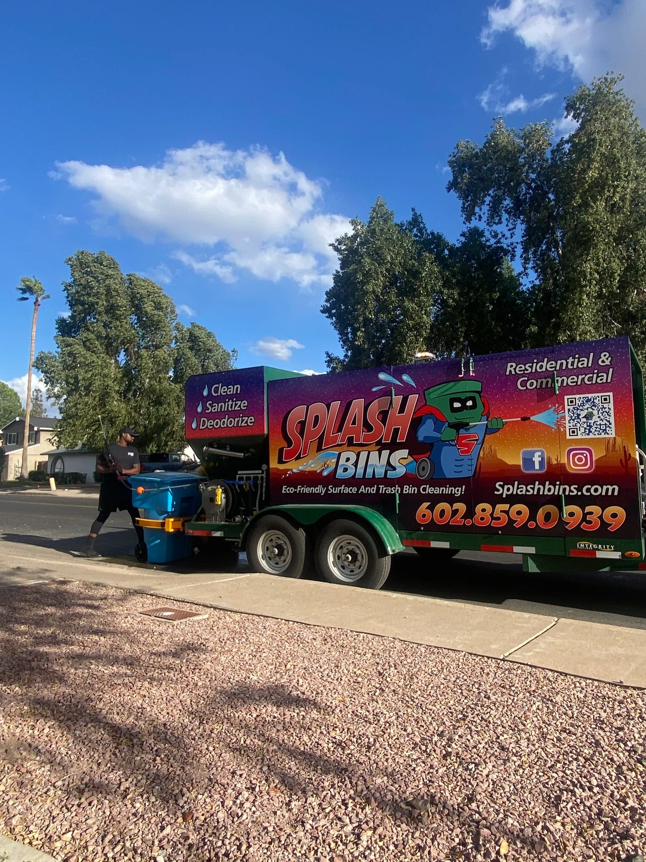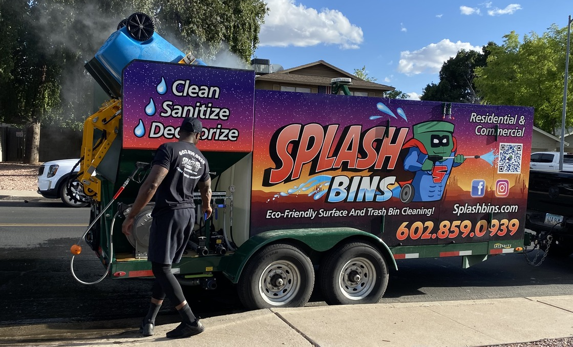 Cheeseboro admits that while trash bin cleaning is not “the most glamorous job” it plays a major role in the cleanliness of Arizona communities and HOAS. Splash Bins serves residents in the cities of Avondale, Glendale, Goodyear, Litchfield Park, Phoenix, Scottsdale, Surprise, and Tolleson. If you’re looking for an eco-friendly solution to clean and sanitize your trash bins, Splash Bins might just be the company for you!