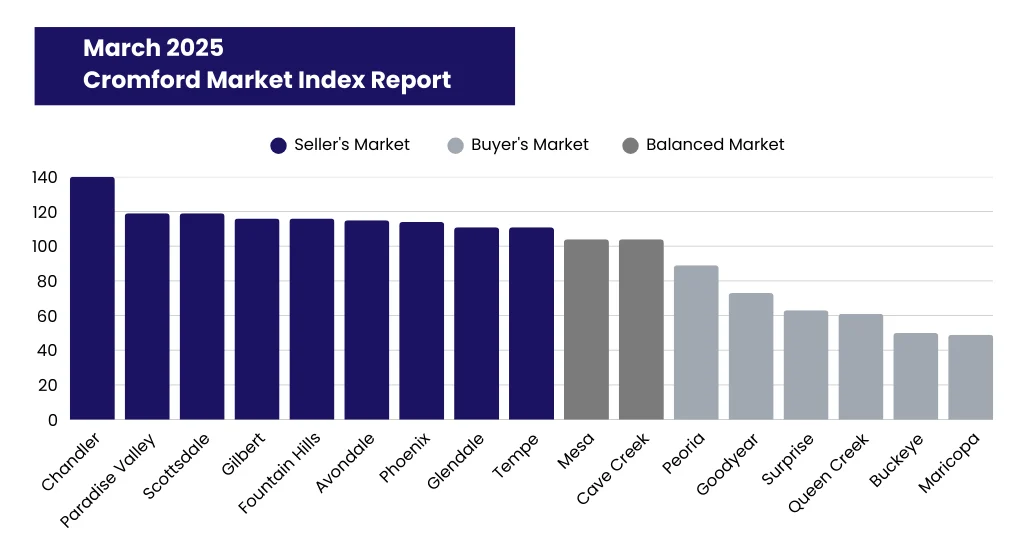 But for buyers, cities like Tempe, Goodyear, and Queen Creek offer major negotiating power. Tempe, in particular, is leading the shift, while Peoria just entered a buyer’s market, with the CMI dipping below 90%, giving buyers more leverage than they’ve had in years.