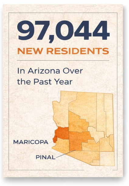 Between July 1, 2024, and July 1, 2025, Arizona added 97,044 residents. That averages out to roughly 266 new people every day. At that scale, growth stops being a headline and starts becoming a condition. This is the moment after arrival.