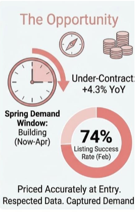 Peel back the top layer, and the story shifts. Homes priced between $300K and $1.5M showed negative year-over-year appreciation in February, and the $500K–$800K range saw closed sales drop more than 12% compared to last year. At the same time, new listings are down 8.9%, suggesting many sellers are choosing to wait. Yet homes under contract are up 4.3%, signaling that motivated buyers are still actively navigating the market. In some ways, it feels like spring arrived early this year.